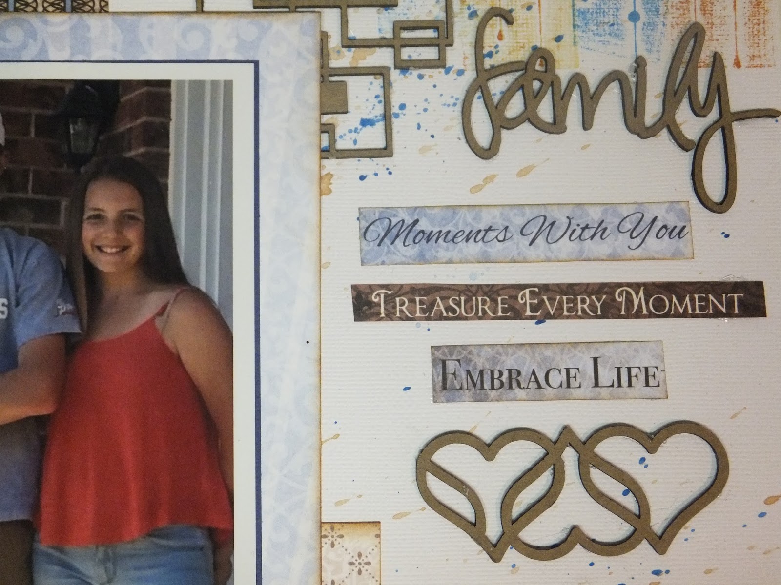 This section adds more chipboard accents and some Heartfelt Creations journal strips from the collection.